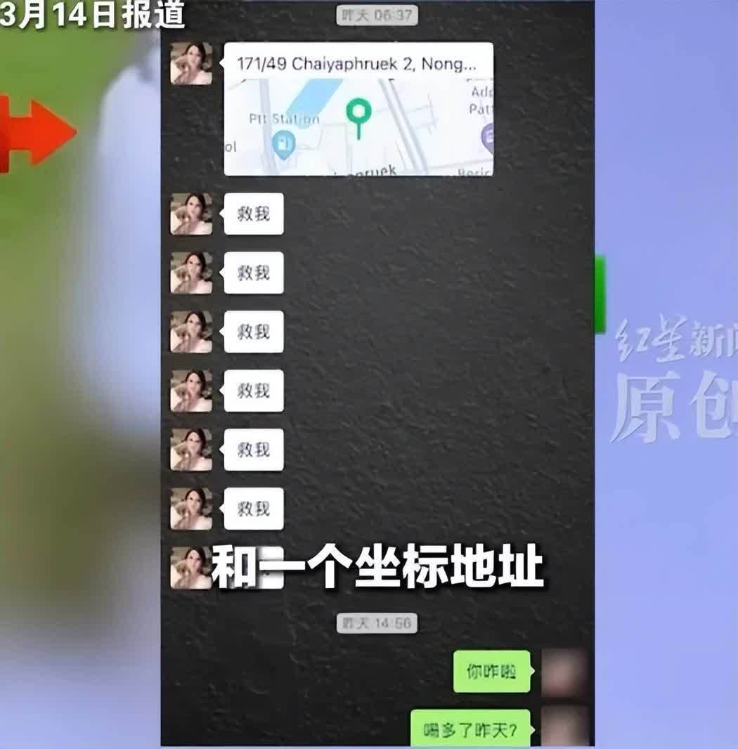 在上月的21日晚,她作为“娱乐陪同”受邀参加一场泳池派对后,便离奇失踪,且在失联前,她曾给自己在泰国的好友连发七条“救我”的消息,并附上了所在的位置。