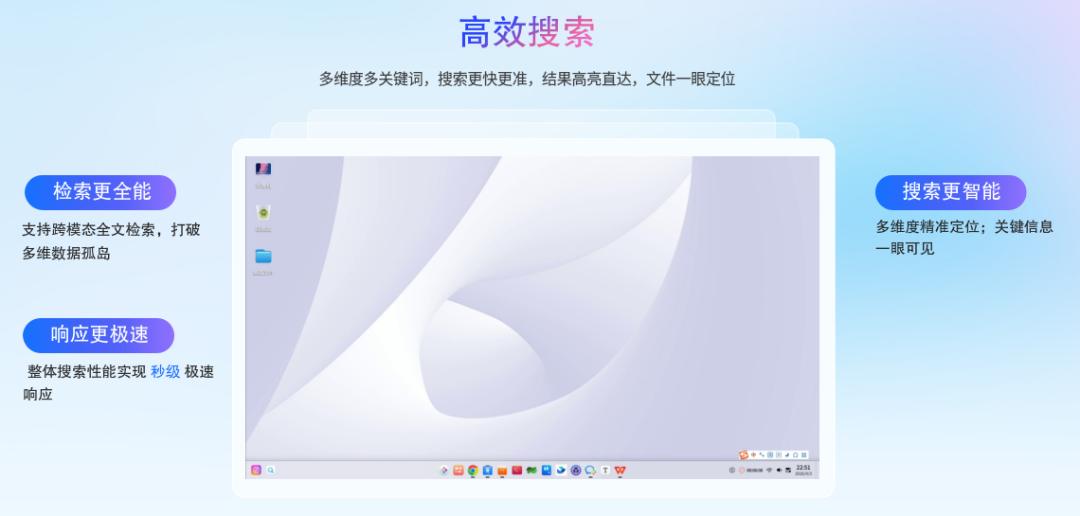在 V20 全文检索(仅文本文件)基础上,新增支持图片文件搜索;保留自然语言搜索,不依赖本地向量数据库,减少资源占用;搜索响应达到秒级。