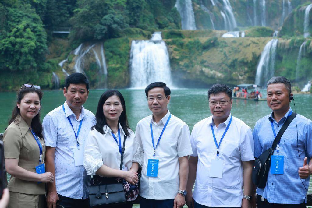 越南边民代表在德天瀑布前留影。(受访者供图)